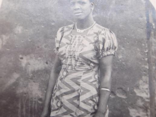 Amazing pair of photos of Mrs OKO OTUKPO who collected 4575 pounds for the West African Spitfire Fund. Postcard size, one showing the lady wearing a spitfire print dress.
