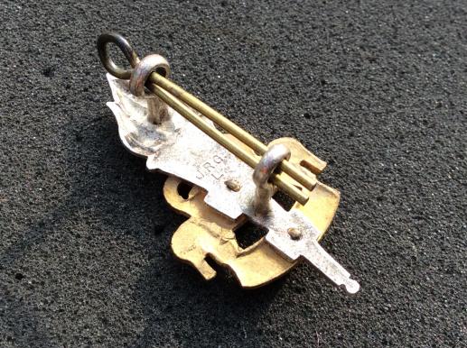 Bi-metal officers cap badge made by J.R.G.L long rear loop fixings