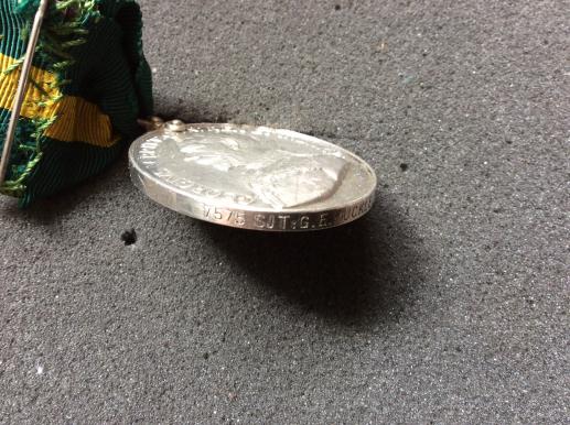George V Territorial Force Efficiency Medal awarded to Sergeant G.E PUCKLE 5th London Regiment in excellent condition and mounted for wear