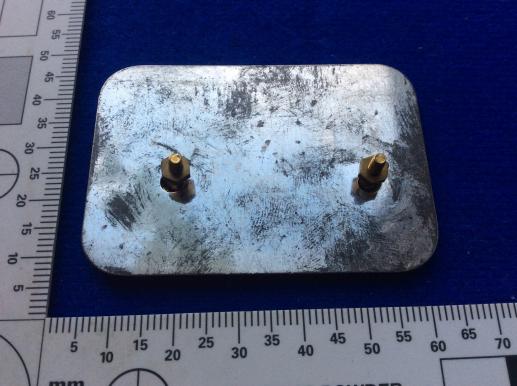 Brass badge with 2 rear screw post fixings and metal backing plate