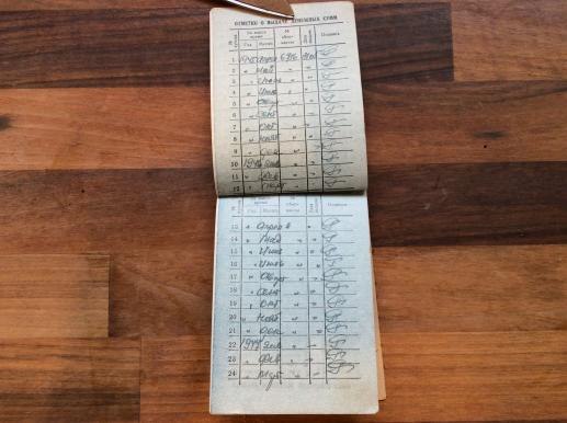 I believe this red pocket book is a Russian Soldiers Pay book , shows 3 pages of entries and the service number of the soldier in the front