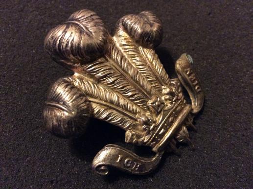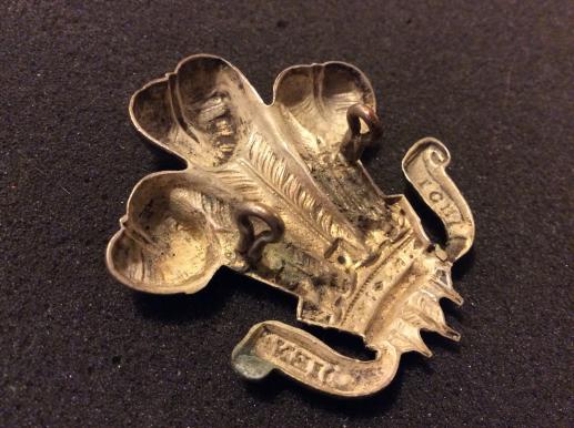 White metal ( possibly unmarked silver) badge , slightly different from the previous ones I have had, the feathers being very close together with the side scroll being raised higher than crown, nice badge
