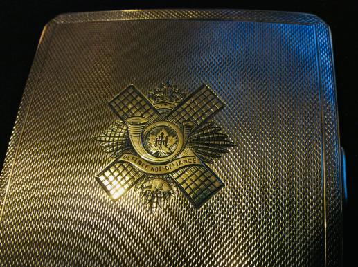 Very high quality solid silver cigarette case made by silversmiths H.PHILLIPS with very clear hallmarks for 1941, the badge of the Canadian Highland Light Infantry has been exceptionally engraved the hing and opening catch work perfectly, size is 80mm x 75mm