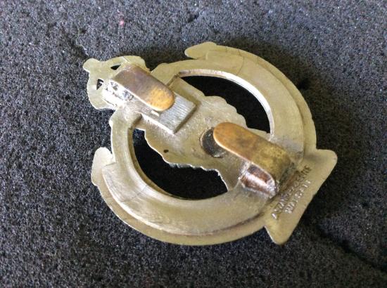 Nice example of a silver finished economy plastic RAC cap badge with rear brass blade fixings