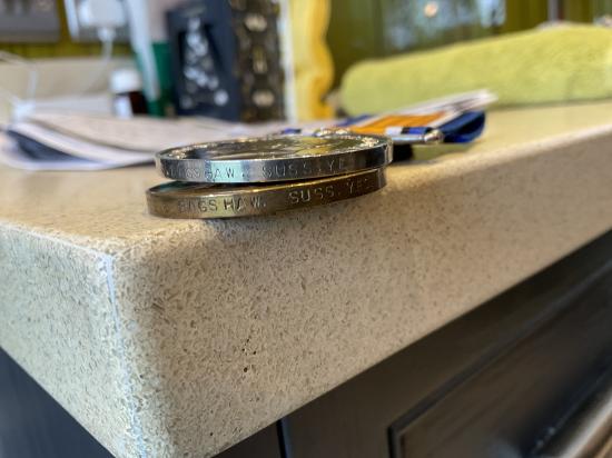 Sydney Willian J BAGSHAW served exactly as the regimental history reads, enlisted early in war served at Gallipoli from October 1915, then Egypt as part of the Suez Canal Defences, before embarking for service in France, he survives all of this and lives to the ripe old age of 94, comes with huge amount of research, please note the 1914-15 star is missing, but still a great Sussex group