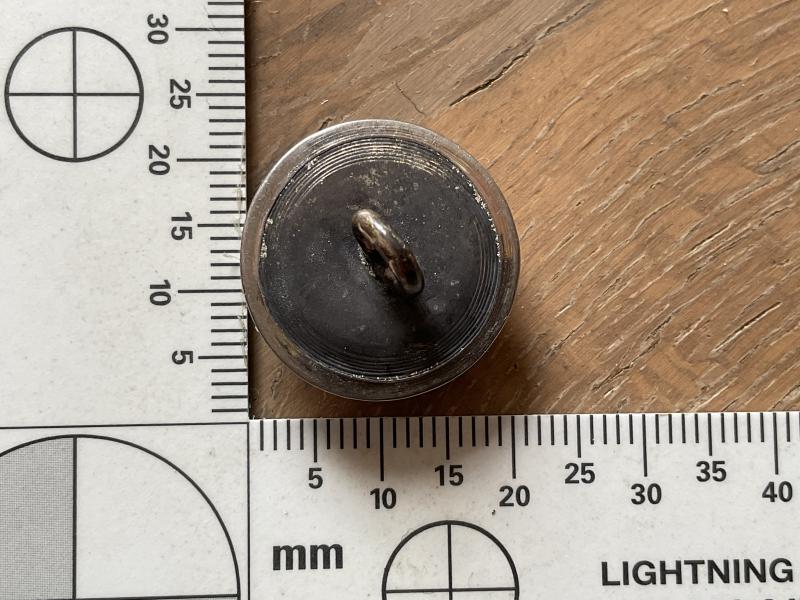 Silver domed shape button 21mm across , very difficult to photo due to reflective surface but a nice button
