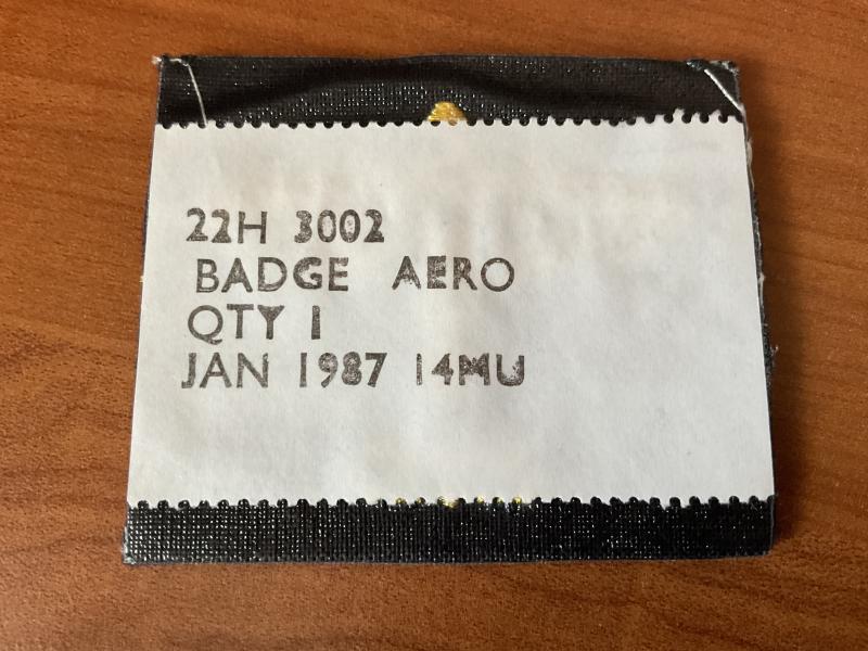 Mint unissued gold Spitfire sleeve badge worn by members of the R.O.C, still retaining the original stores label on rear
