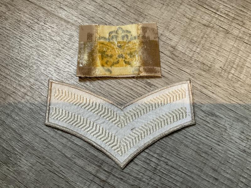 Very unusual item in dark blue embroidery on stone coloured cotton also comes with the tropical Corporals stripe