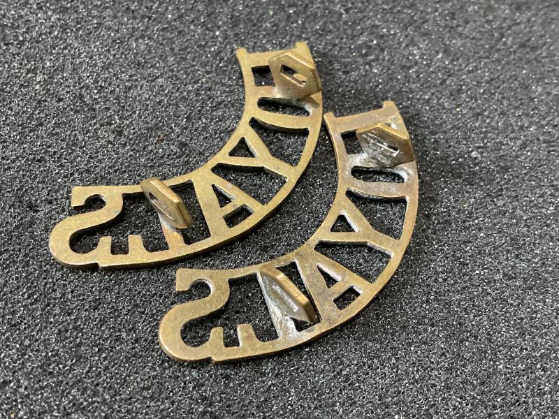 WW1 Loyal North Lancashire (LOYALS) brass shoulder tiles