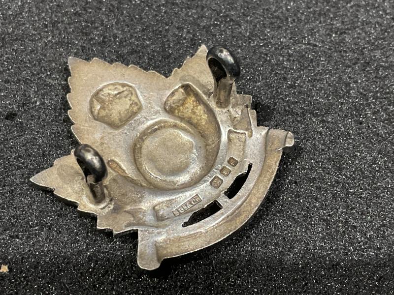 Beautifully made and rare solid silver Canadian Saskatoon Light Infantry officers cap badge, nice clear silver hallmarks showing that it was made in London in 1941