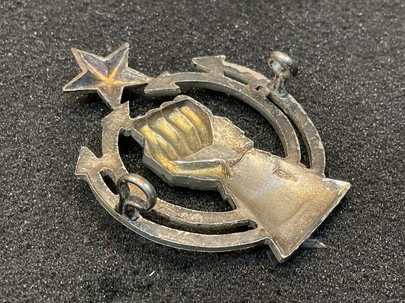 Unusual to see R.A.C instead of I.A.C on the mailed fist. Outstanding and rare officers unmarked silver cap badge, heavy badge with 2 rear loop fixings.