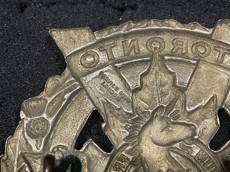 Rare makers name on a post WW1 badge, Toronto Scottish Glengarry badge with a nice clear makers stamp on rear Service Supp London