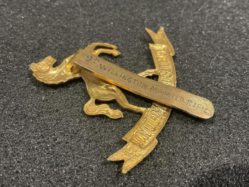 Rare WW1 New Zealand brass cap badge in good condition (cap badge details written or painted on rear slider ! )
