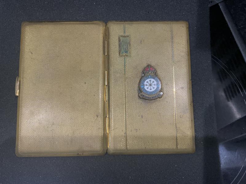Brass cigarette case with the brass and enamel badge on No 39 Fighter Squadron , Royal Air Force. Case has nice age patina but could also be polished up you want too.