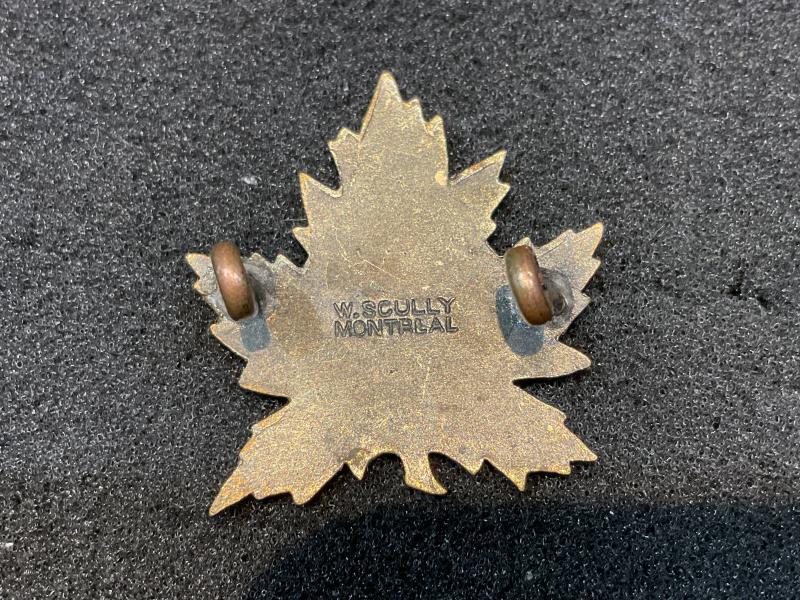 Pickled brass die cast collar badge nicely maker marked W.SCULLY MONTREAL