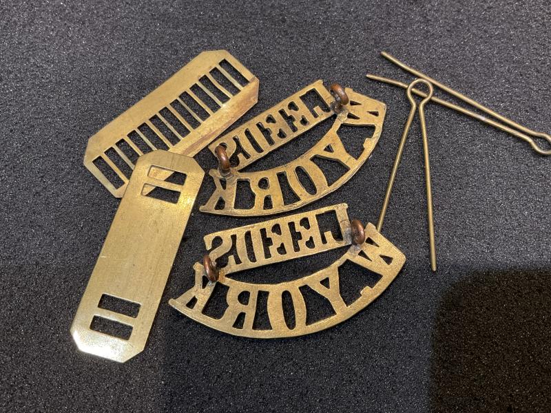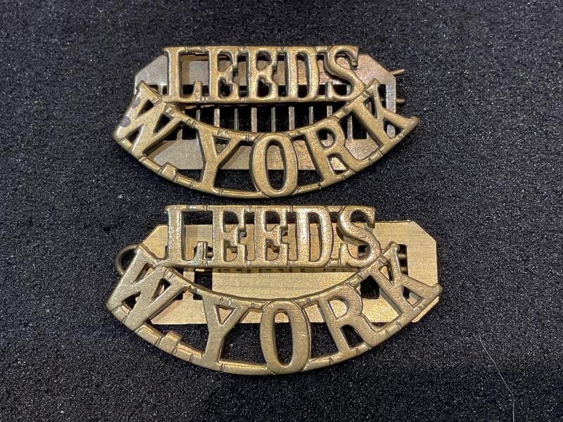 Pair of brass other ranks shoulder titles worn by 15th and 17th (Service) Battalions of the 1st and 2nd Leeds Pals