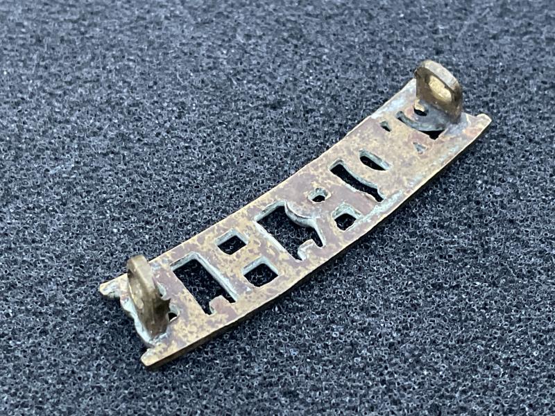 Small brass shoulder title worn circa 1921-29 with 2 rear loop fixings