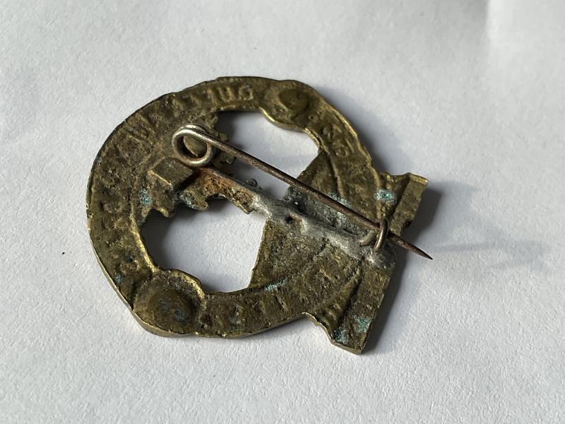 Locally made cast brass cap badge of the New Zealand Queen Alexandras 2nd Wellington West Coast Mounted Rifles. This was obviously cast from an issue brass cap badge when the Rifles was serving in either Gallipoli, Sanai or Palestine campaigns