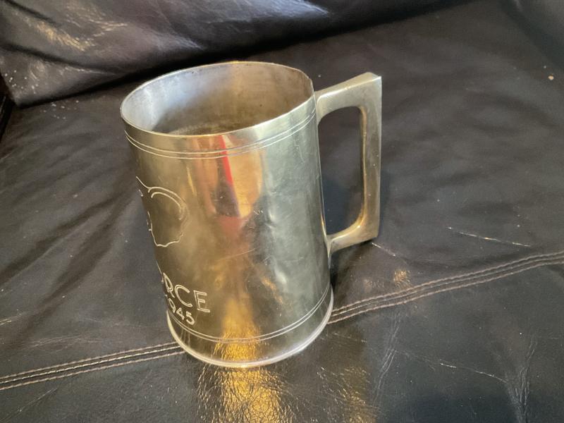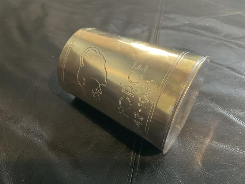 Locally made brass beer tankard , nicely engraved with the Elephants head motif used by the Persia & Iraq Force ‘PAIFORCE’