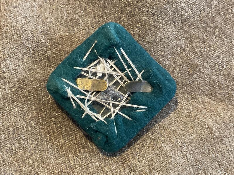 Absolutely outstanding example, badge is in perfect condition and still retains both of its brass blade fixings. Period mounted to dark green wool backing which might be representing a specific battalion ?