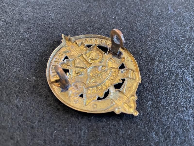 Brass pre WW1 cap badge with flat sheet brass lug fixings.