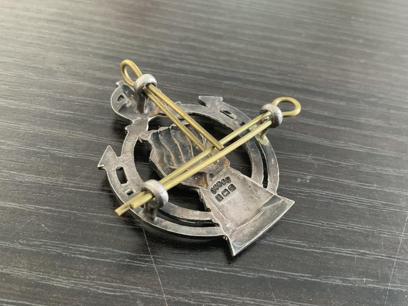 Superb example of solid silver Royal Armoured Corps Officers cap badge made by J.R.GAUNT & Son. Clear 1941 hallmark.