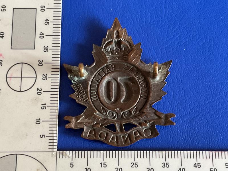WW1 C.E.F 70th Infantry Battalion cap badge.Lovely dark bronzed finished finished patina , nicely maker marked INGLIS LIMITED on rear.