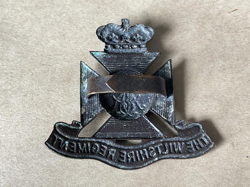 Wiltshire Regiment Officers Service Dress Cap badge, very dark bronzed finish with 2 rear blade fixings.