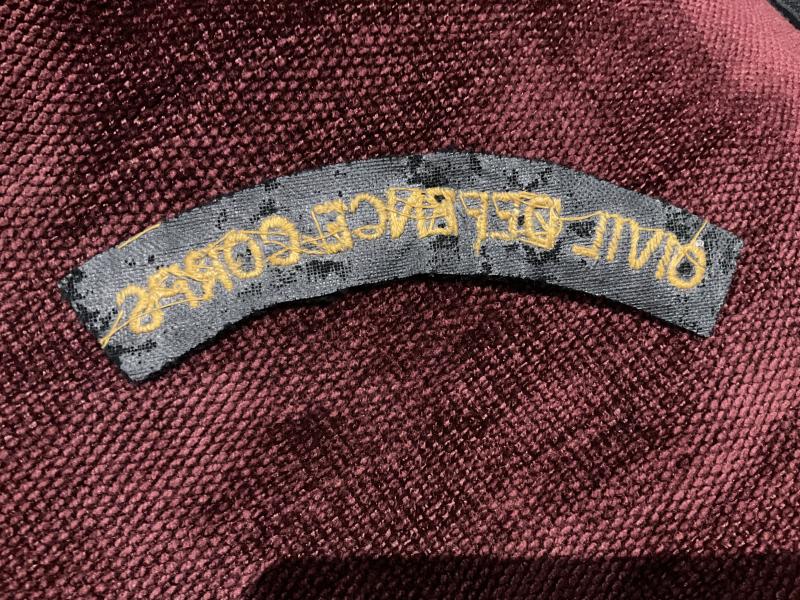 CIVIL DEFENCE CORPS (Malta) cloth shoulder title. This gold embroidery on black wool title was issued to the Maltese Civil Defence Corps, in mint unissued condition.