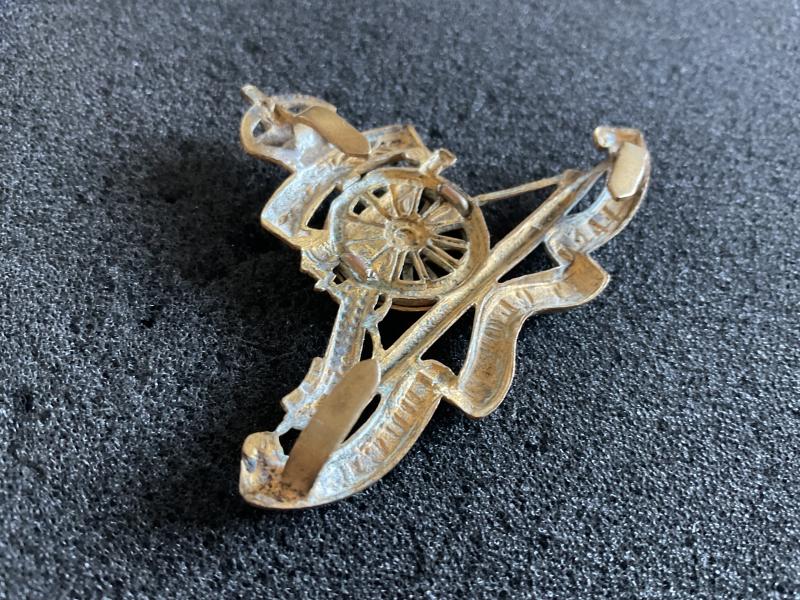 K/C Post 1902 Territorial Army Royal Artillery officers gilded brass cap badge with rear blade fixings