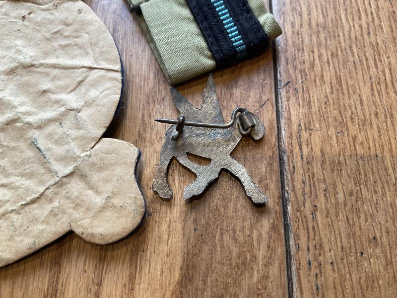 Superb set all found together consisting of bullion flight suit badge (minor mothing), desert issue rank badges, locally made silver “flying Camel” a locally cast RAF badge that appears to be for a cap or headdress (top securing catch missing) outstanding and possibly unique set from a very interesting Squadron.