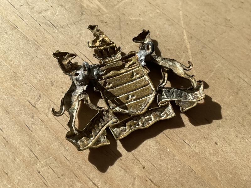 South African Selbourne College Cadet Corps brass cap badge, rear loops have been firmly replaced many years ago with lead solder