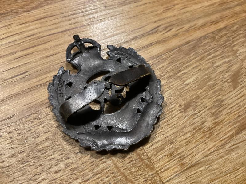 WW2 Royal Engineers Officers Service Dress cap badge by GAUNT LONDON. Rear blade fixings.